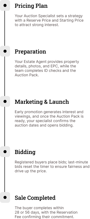From start to finish, you’re fully supported by a dedicated Auction Specialist who collaborates with you and your Estate Agent to select the most effective auction approach.